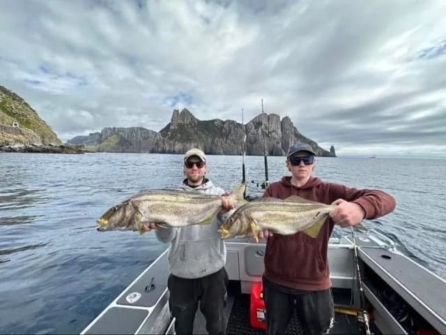 Fergus Shepherd and Angus Parkinson off Tasman Island with a few nice fish.